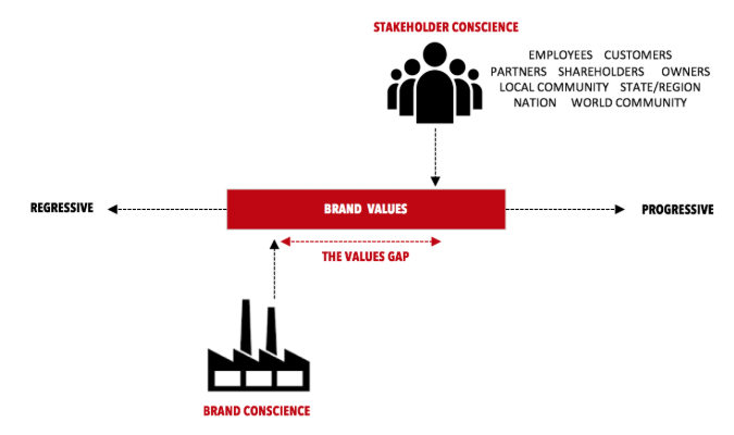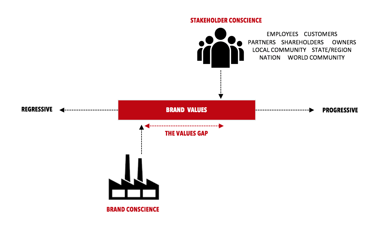 Brand activism is a new standard by which companies are called to accountability. To understand what this means, let’s look at how businesses might address the the values gap which we define as the difference between stakeholder values and brand values.